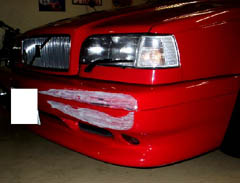 ボルボの純正フロントキャリパーは、本来、片押しの1ポットキャリパーであるが、今回、フロントブレーキはブレンボの4ポットキャリパー&ステンメッシュブレーキホースに交換した。