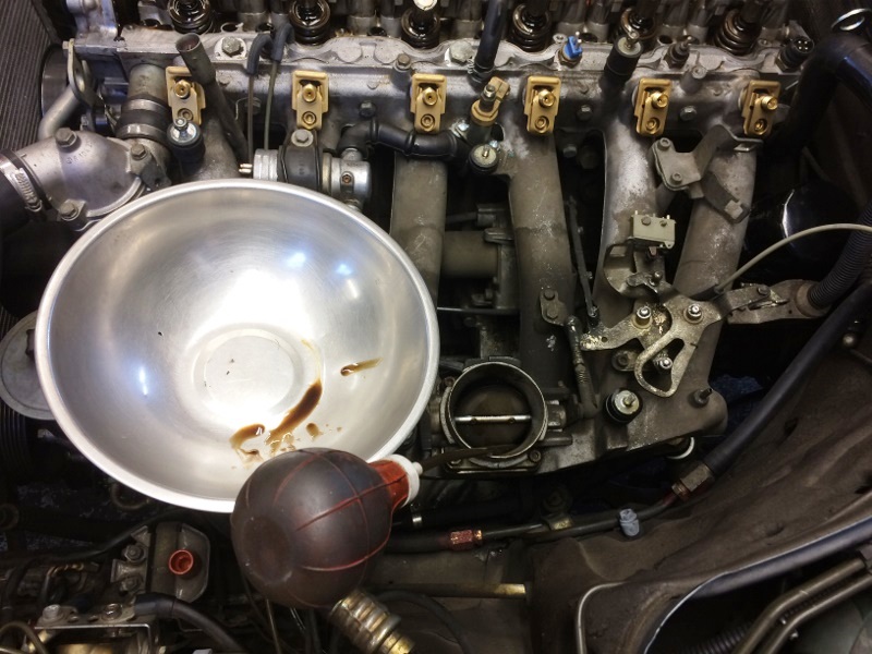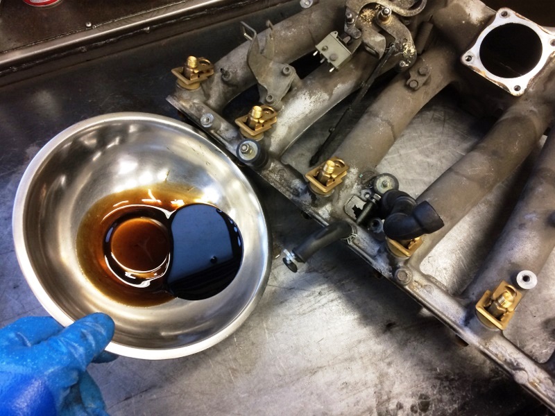 先日、入院先の工場の社長から連絡があり、「バルブガイドが抜けており、オイルがインマニにたっぷりたまっている状態です!」との事!