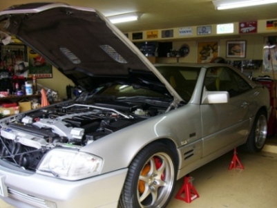 この御仁、R129に関しては、異常な程こだわりを持っているので、心血注いで作り上げた現在のAMG7.2Lエンジンをだいじにしないと後がうるさい!