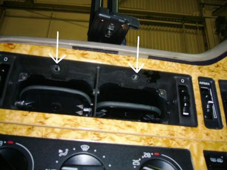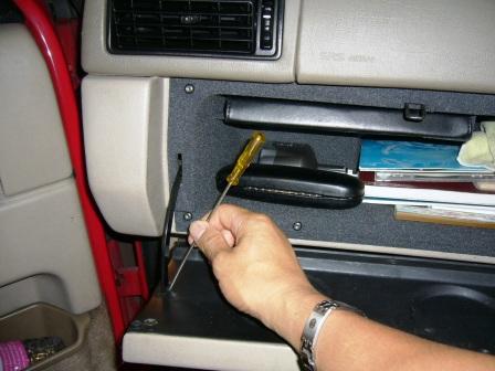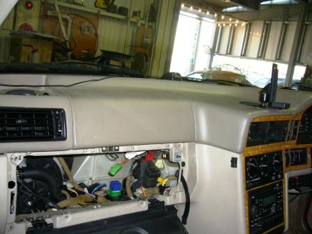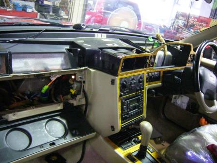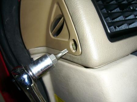 グローブボックスを外すと、ダッシュボードを留めてある10ミリの六角が見える。これも全部外す。