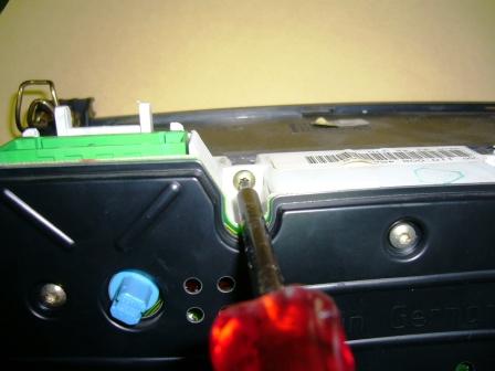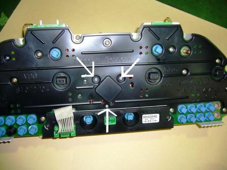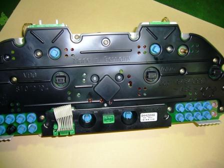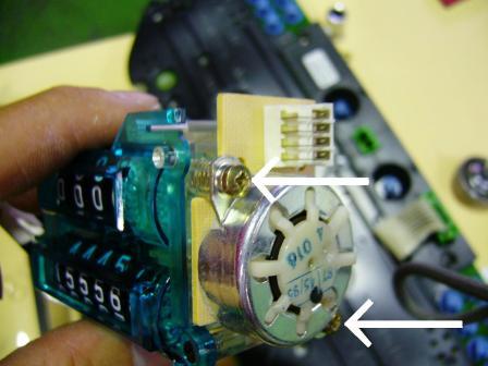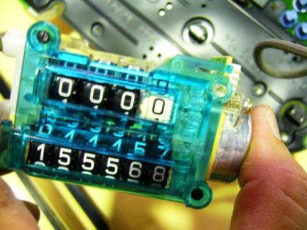 これも外す。 画像は助手席側だが、運転席側も同じように外す。 すると、奥に更にネジがあるので外す。運転席側も同様。 左右のスピーカーのネットをマイナスドライバーでこじって外し、スピーカーを取り外す。 エア吹き出し口のルーバーを3個(運転席側上段1個・センター2個)外す。 助手席側のルーバーは外す必要はない。(ここにはダッシュボードを留めているネジはない) ルーバーは、クリップ外し等を使って、横に押しながら手前に引くようにすれば簡単に外れる。 外した後、上を見るとここにダッシュボードを留めてあるネジが隠れている。これを奥に落とさないように慎重に外す。 メーターが入っている箇所にもネジが2個あるので外す。 これでダッシュボードを固定してあるネジは全部外したので、ダッシュボードを手前に引きながら上に持ち上げるようにすれば外す事ができる。 メーターユニットが丸出しになるので、配線を外す。 これは見えるので簡単に外せる。 これはフロントガラス越しに真上から見た画像 メーターの裏のパネルを留めているネジを全て外す。 裏を良く見れば留めてあるネジは直ぐにわかる。 これも外す。 あとで判ったのだが、メーターの裏の黒いパネルは外さなくても良かった。 パネル周辺部のネジだけ外して、ユニットとメーターカバーを分離すればOKだ。 オドメーターは、裏側のネジ3箇所で固定されているので外す。 するとオドメーターを取り出すことが出来る。 オドメーターの横のネジ2本を外すと問題のギアが現われる。 ギアの歯を良く見ると折れているのがわかる。 ちなみに、対策品のギアは白色に変更されている。 ギア交換後、逆の手順で取り付けてれば完了だ。 |