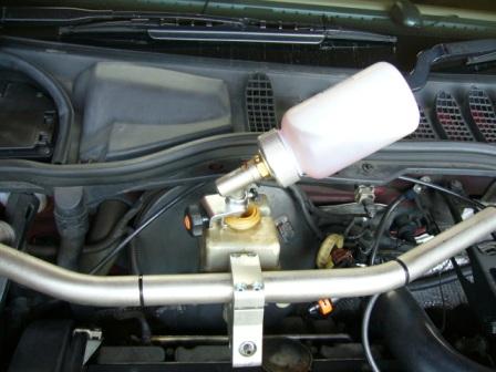 しかし、フルードを吸い込む一方で、フルードタンクにブレーキフルードがなくなってしまうとエアが入ってしまう。 そこで、タンクにフルードを補充する補充ボトルも購入した。