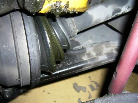 グリスは、シャフトブーツ周辺はもちろんの事、ホイル裏やフェンダー内にも飛び散っていて掃除が大変だ!