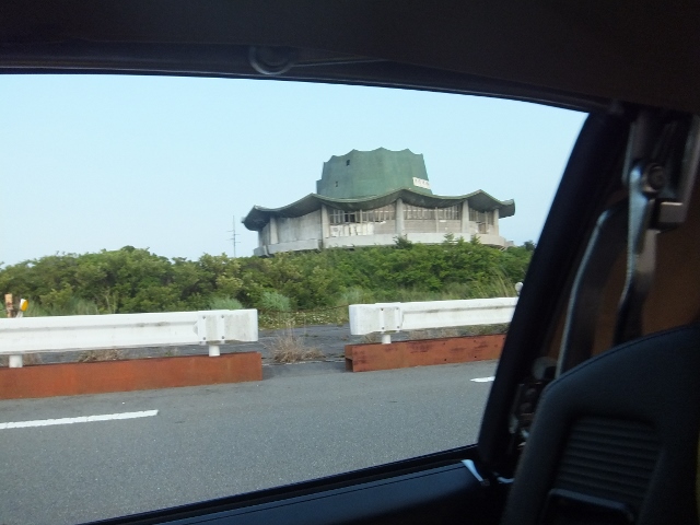 望遠で撮影! 浮世離れした巨大な建造物だ! どこかの教団の建物だろう。