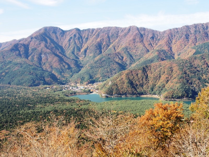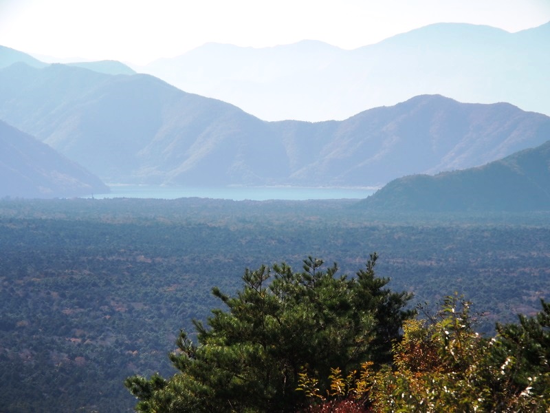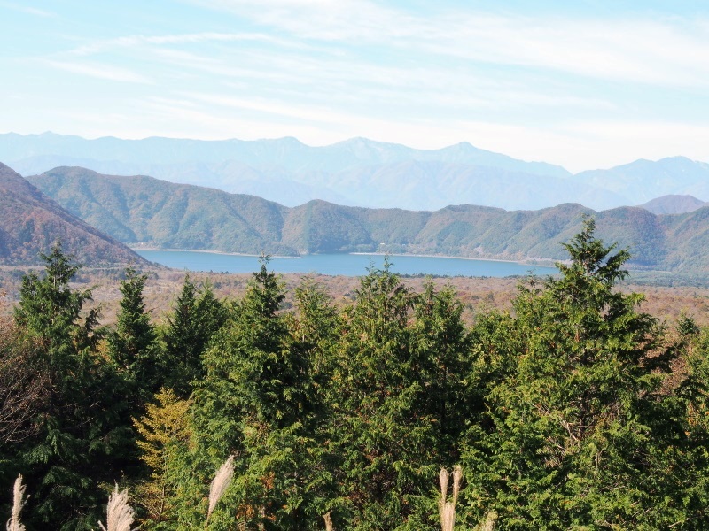 富士山を背にすると、右側に西湖、左側に本栖湖が見える。