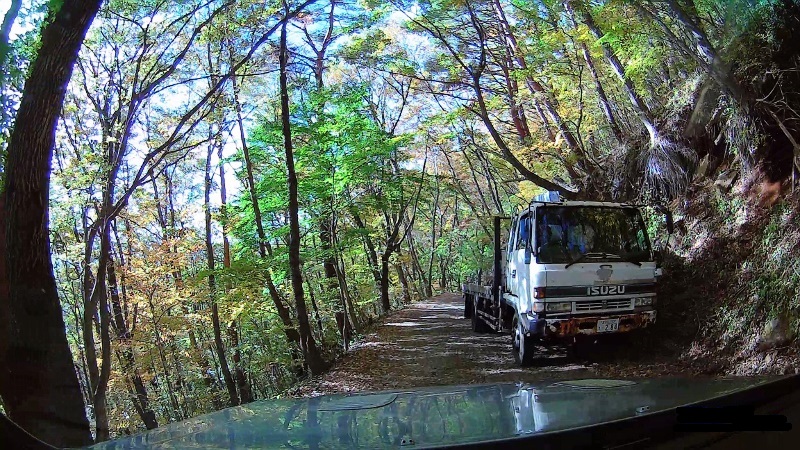 下りて来る車があったら、絶対にすれ違えないと思っていたら、途中に若干広い道も出てくるので、ここならすれ違う事も出来そうだ!