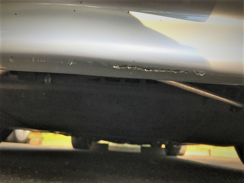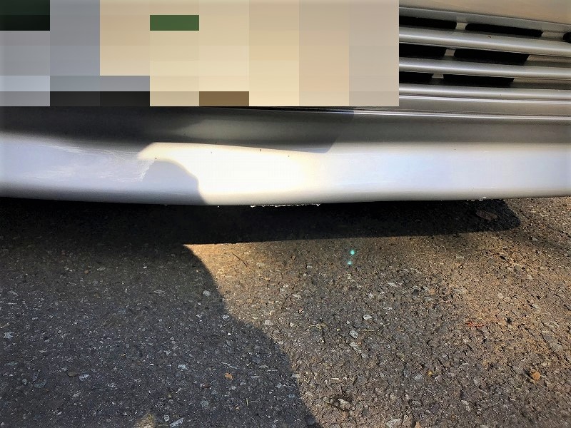 急坂なので、角度のきつい場所では、おりる時にステアリングを切ってなるべく斜めにゆっくり進んだが、坂道の最後の最後で鼻先を擦ってしまった。(涙;)