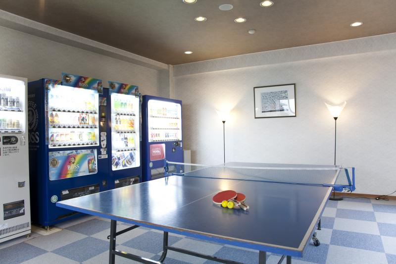 チェックインまで30分ほど時間があったので、友人と宿で卓球勝負。