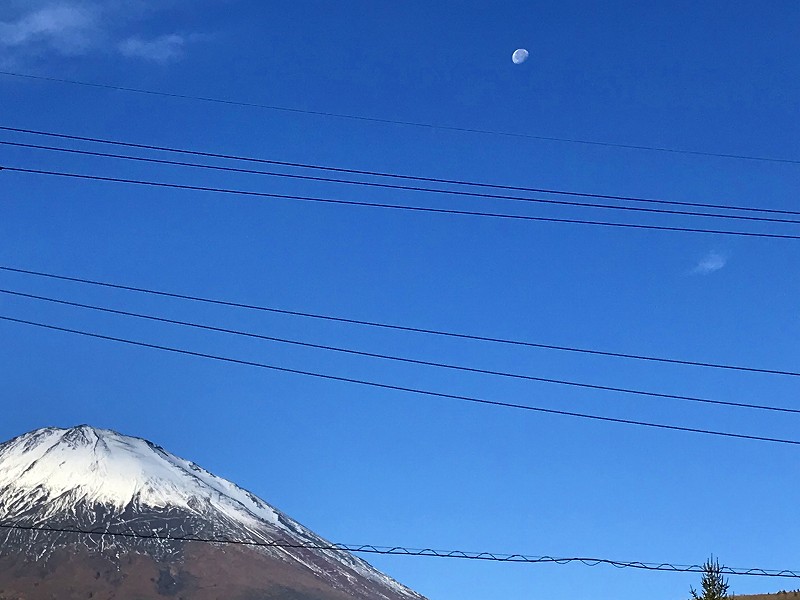 富士山と月。