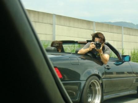今回も全開走行で一瞬姿が消えたかと思うと、いつの間にか背後に白いSLがチラホラ見え隠れしている状況が幾度と無くあり、良く見ると全開しながら笑っているブラさんの顔がルームミラーに映し出されていた!