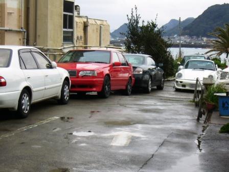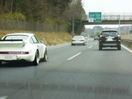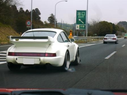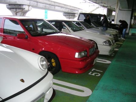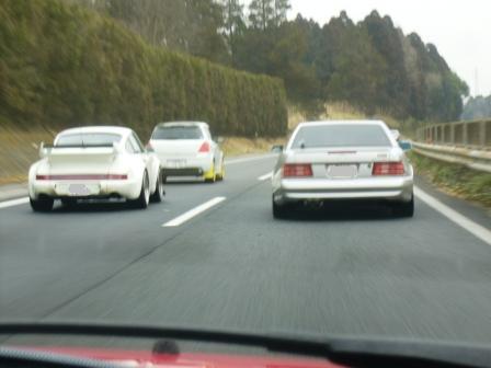 今回のツーリングで向かう方面は、近場の千葉・房総半島だ。 高速道より一般道を走る時間が多いので、テスト走行には丁度いい。 さてさて、ツーリングだが、9時に芝浦PAに集合。 ゲストで、前々回のバーベキューツーリングに参加したヒロポンが今回も参加している。 ひろぽんは、今回、ハンディー無線機を購入してきたので、周波数とスケルチのセッティング等を行い、30分後くらいに出発となる。 Loversのツーリングでは、走行中のコミュニケーションは欠かせないのを彼は知っているのだ。 偉いぞ、ひろぽん。 首都高から湾岸に抜けて、東金道路の山田ICでおりる。 そのあとは一般道での走行が続くコースだ。 タッキー号が先頭を走り、筆者のVOLVOがそれに続く。 東金道路は交通量が多く、STOP&GOが多くなる。 こういう状況下では、ポルシェの忍者走りが有効だ! だが、筆者のVOLVOも今回は負けてはいない! ピッタリと背後に張り付き、200kくらいまではいい勝負だ! 高速コーナーでは、VOLVOに多少の優があるようだ! 確かに、ホイルベースの短い旧型のポルシェでは、200k以上の高速コーナリングになってくると、チョッとしたバンプでどこに飛んでいくか分からない嫌な挙動があるのだろう! それでも、さすがタッキーだ! アクセルを踏み続けている! 頭が完全にイッちゃってるな! まともな神経を持ち合わせている人間は、あそこでアクセルを開けないよな!って思う場面がいくつかあった!(汗;) VOLVOでタッキーポルについていけるなら、筆者としては大満足である! 以前なら、この速度域でコーナリングをしていたら、確実に壁に張り付いていただろう! よーし、これで、VOLVOの足は取りあえず完成としよう。 あとは、Powerがもっとあれば・・・! 今まで、足が決まるまでは決してパワーを求める事はしなかったのだが、これでエンジンパワーに手を入れることに決心がついた。 紅号を追うタッキーポルシェ 東金道路の山田IC手前数キロで、覆面さんが紅号とタッキー号の背後に・・・ どこかで追い越したみたいだ! 赤色灯を回転させながら、背後に迫る! 赤色灯を覆面らしく仕舞い込んで、追尾する事数分間・・・この状況下では、誰も行かないよな!って思っていたら、一台のHonda Fitが・・・! 「絶対につかまるぞ!」っていう速度で、我々の横を通り過ぎていった! とっても勇気のあるFitだ!! 我々は山田ICでおりるところだったので左側道へ移ったのだが、その直後に本線上のFitの背後で赤色灯が回りだしていた! 一般道の走行では、眠くて眠くて・・・、時どき無線で誰かが喋ると「ハッ」として目が覚めるが、またしばらくすると睡魔が襲ってくる。 どんよりした天候と雨が眠気を誘っているように感じる。