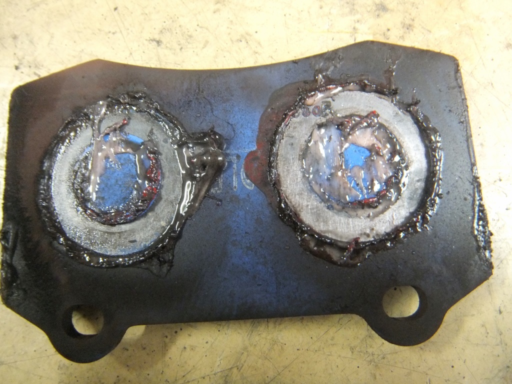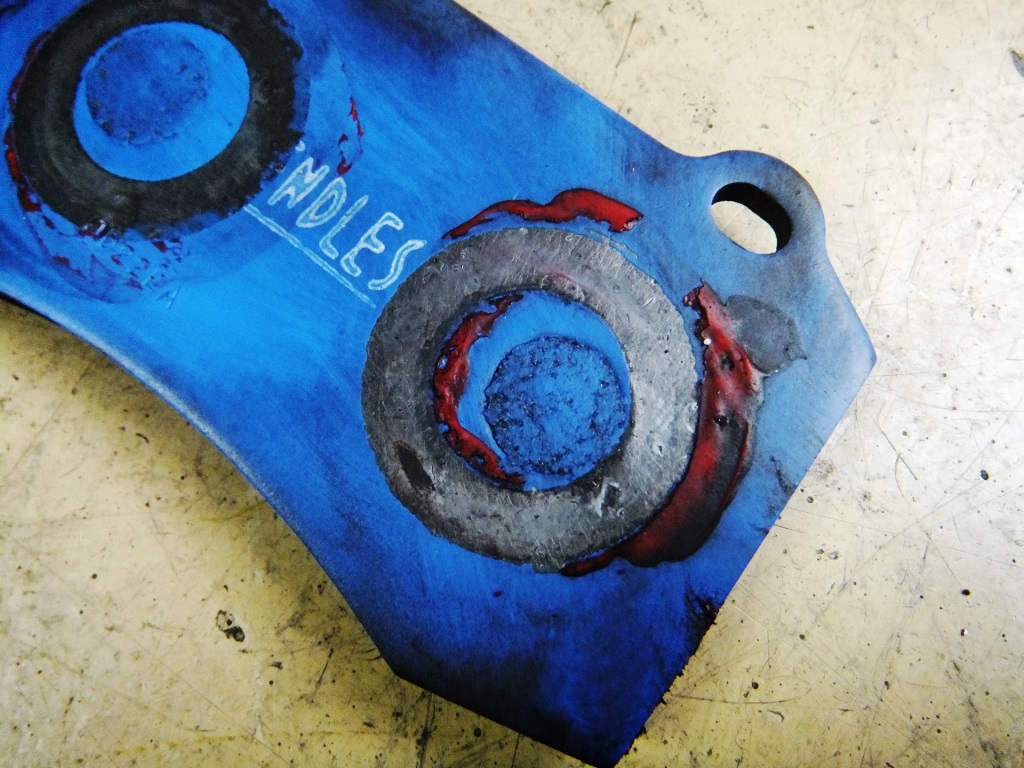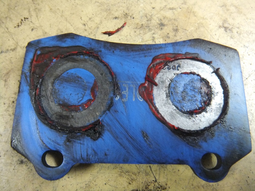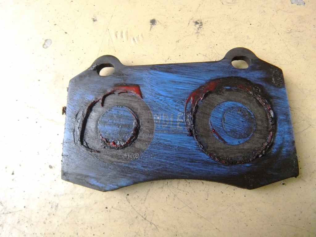 こちら側のパッドも、やはり同じように古い鳴き止め防止剤の上からそのまま新たに防止剤を塗っている!