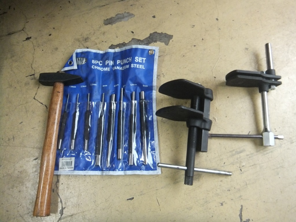 ブレーキセパレーターでピストンを縮めてパッドを外しやすくする。