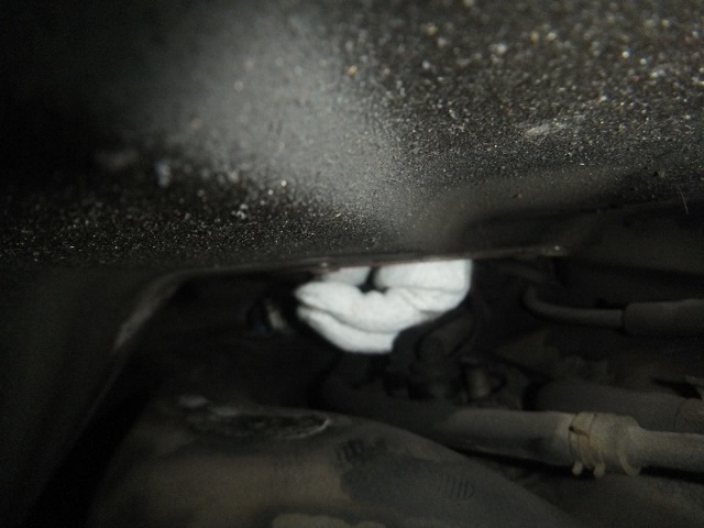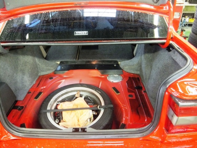 まずは、ヒューエルポンプユニットからの漏れがあるかを確認する為、トランク内のインナーをはぐる。