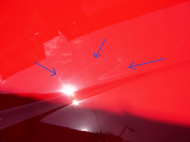 気にもしていなかったが、言われて良く見ると、ボディーに写っている太陽の光の周りに、確かにオーロラの様なものが・・・!!