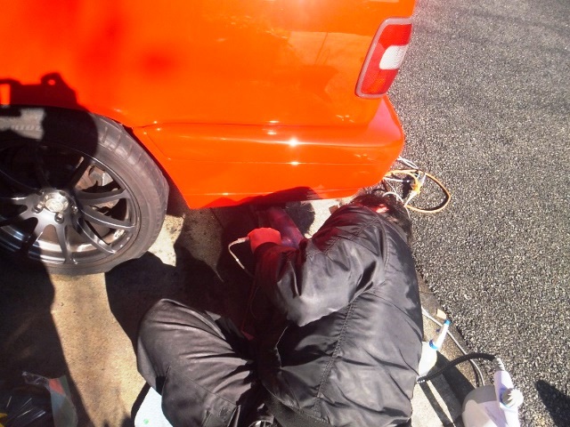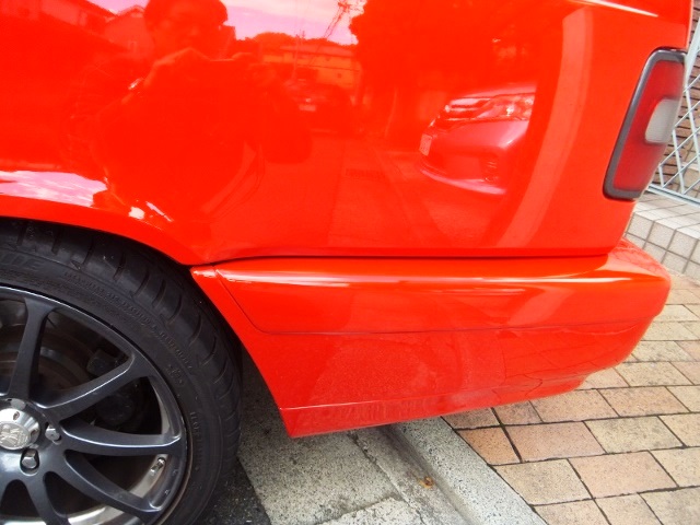 リアバンパーの下部。 ここもタイヤで踏んだ小石等を跳ね上げて傷がつきやすい部分。