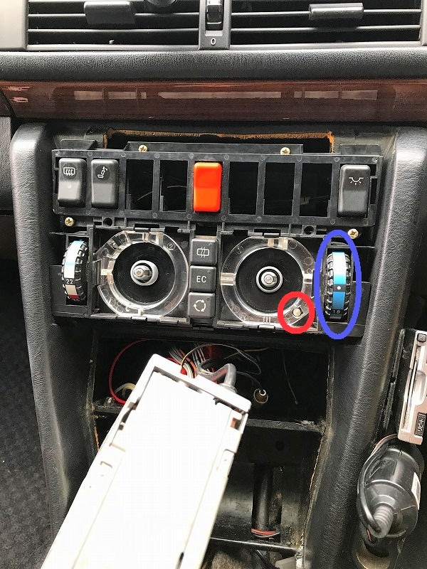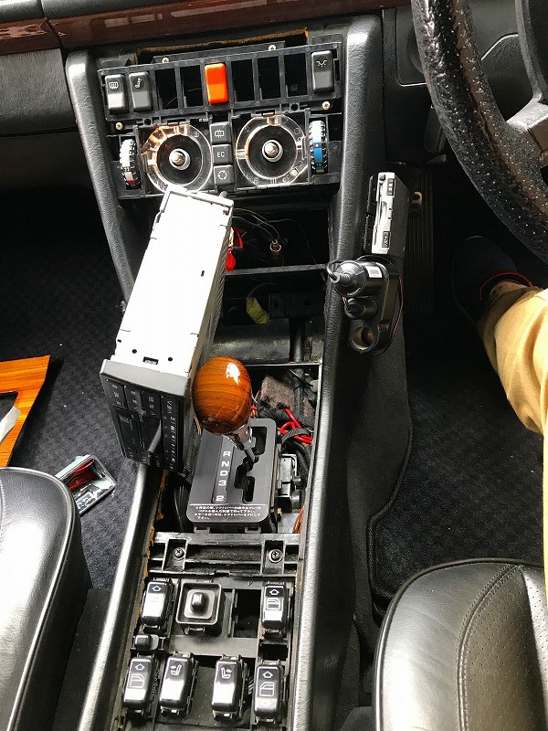 本来なら、この作業を行う前に、先に灰皿を外して、オーディオデッキを抜き取った方が良い。