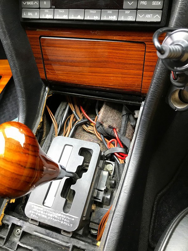先ずは、センターコンソールのカバーをめくり、カバー下のプラスネジを外す。