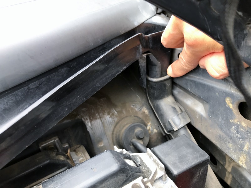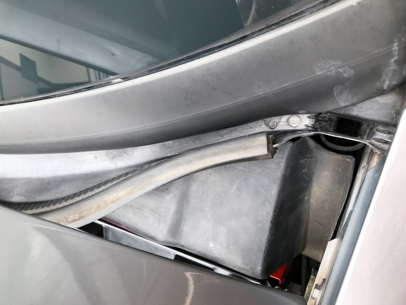 たしか、この足元の上の方にはボンネット内に雨水を逃がす雨どいがあったはず!