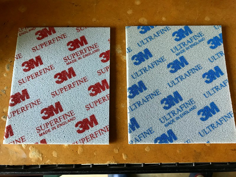 最初に赤を使用し、研磨目は#320〜#600で、強く押すと#320、弱く押すと#600の研磨目に相当するらしい!