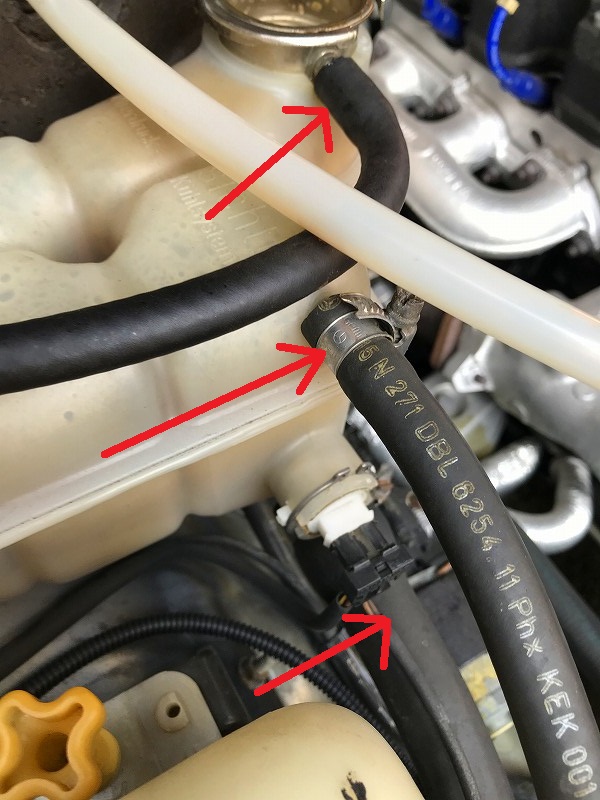 10mmボルトを外したら、ホース3本を外す。