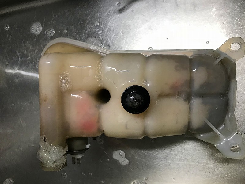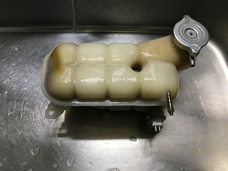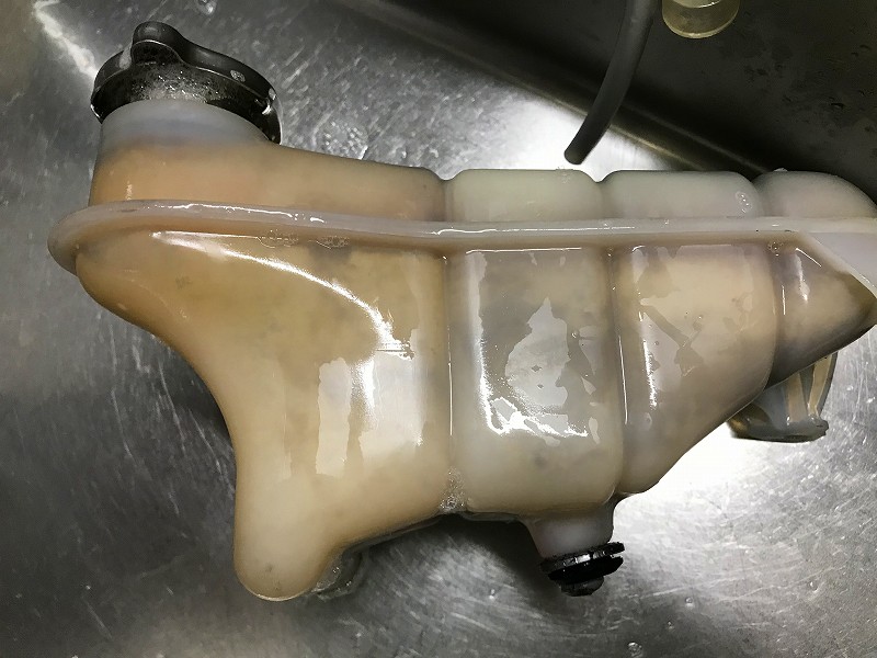 水で薄くなったクーラントを全部抜いて、リザーブタンクも洗浄することにした。