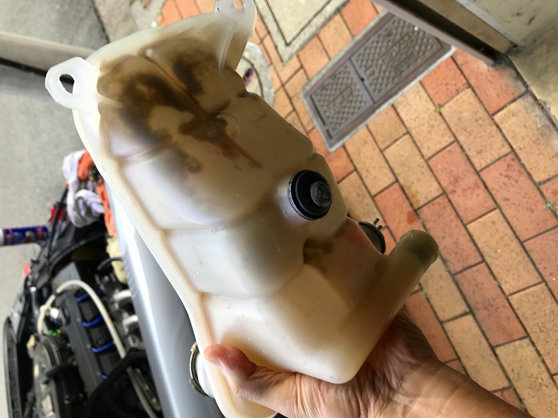 エンジンオイルの交換を行ったのだが、その時にクーラントのリザーブタンクに黒い影が・・・・!?