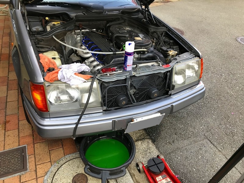 クーラントを抜き取って、水で洗浄。