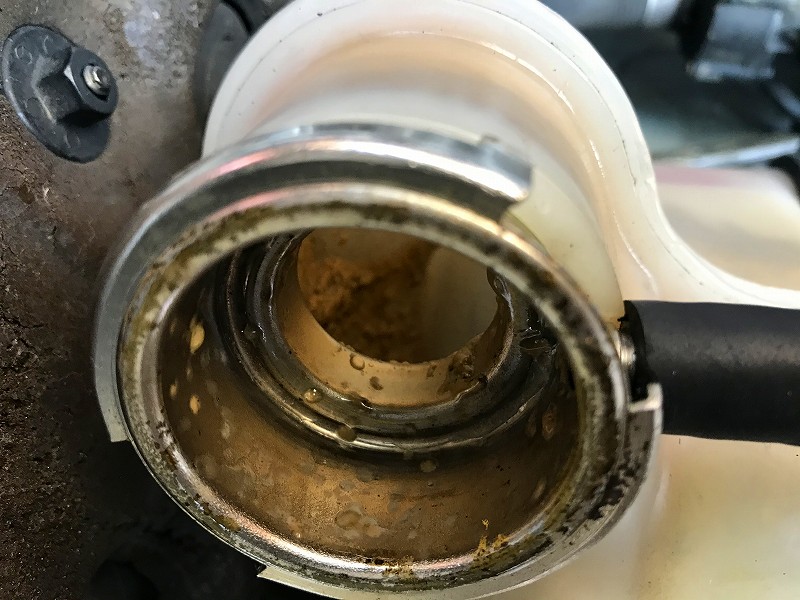 リザーブタンク内にはオイルがべっとり付いている!