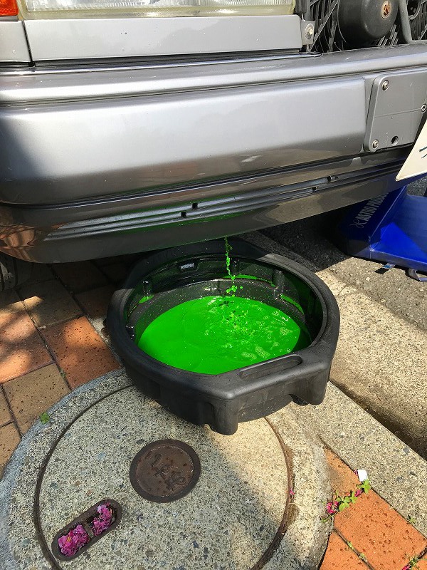 とりあえずラジエターのドレンコックを回して、クーラントを抜いてオイルがどのくらい混じっているか確認することにした。