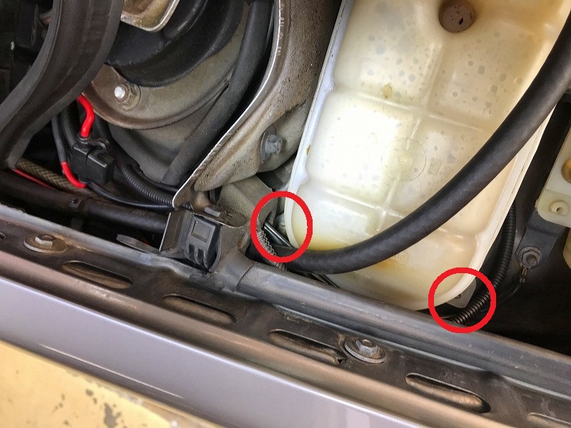 300Eには、95℃付近で電動ファンが回るように、サーモスイッチ電動ファンコントローラーを取り付けているのだ。