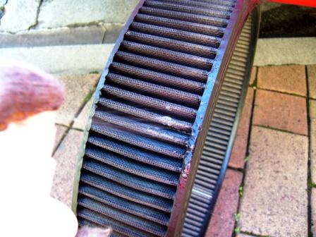 フィルターに付着しているオイルも乾いてしまっていて、所々白くなっている。