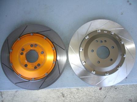 画像は、今まで付けていた355mmローター(左)との比較画像だが、何となく大きくなったような・・・感じが・・・。