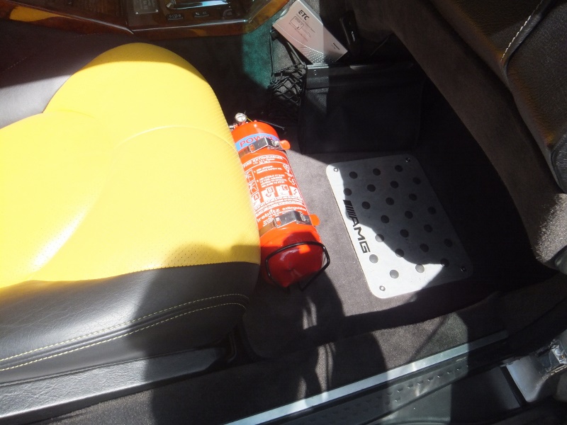 多少大きめだが、SLの助手席には人を載せる事は滅多にないので、消火能力も十分にあるこの消火器を選んだ。