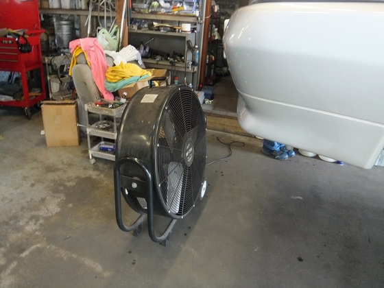 外気温33℃、走った後なので、2時間以上は送風機でエンジンを冷やさないと、作業はできない。