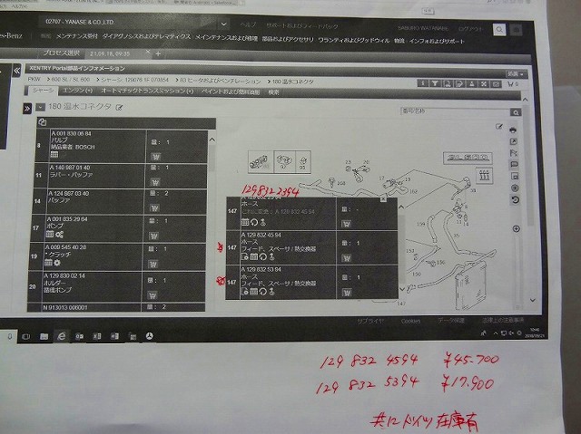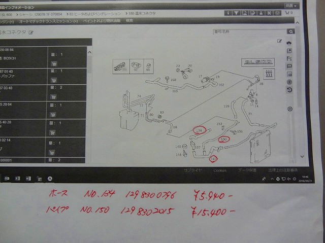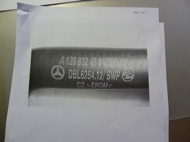 友人から送ってもらったホースの品番写真と取り外した現物のホースの品番が一致!