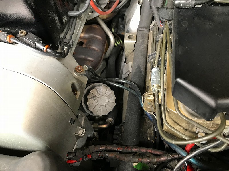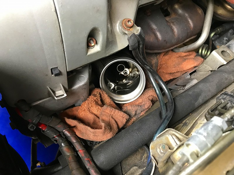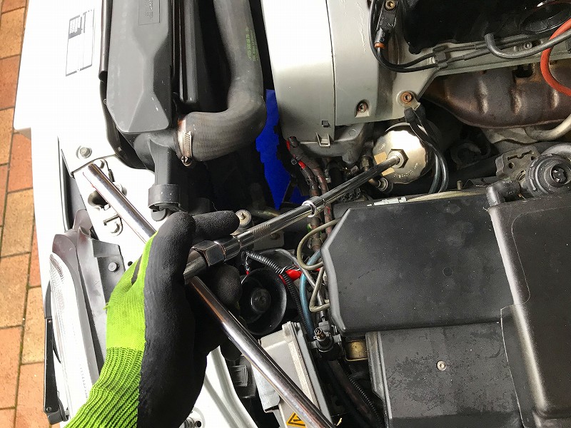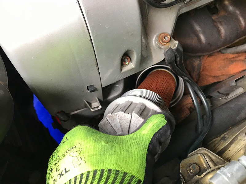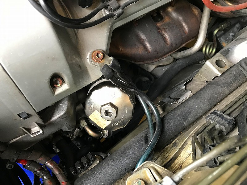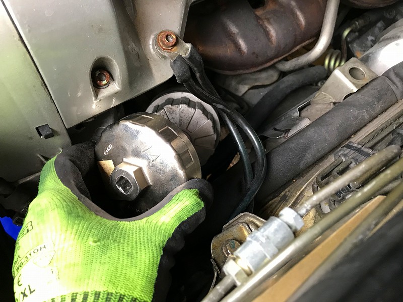カップ型オイルフィルターレンチをが撫せてフィルター交換。