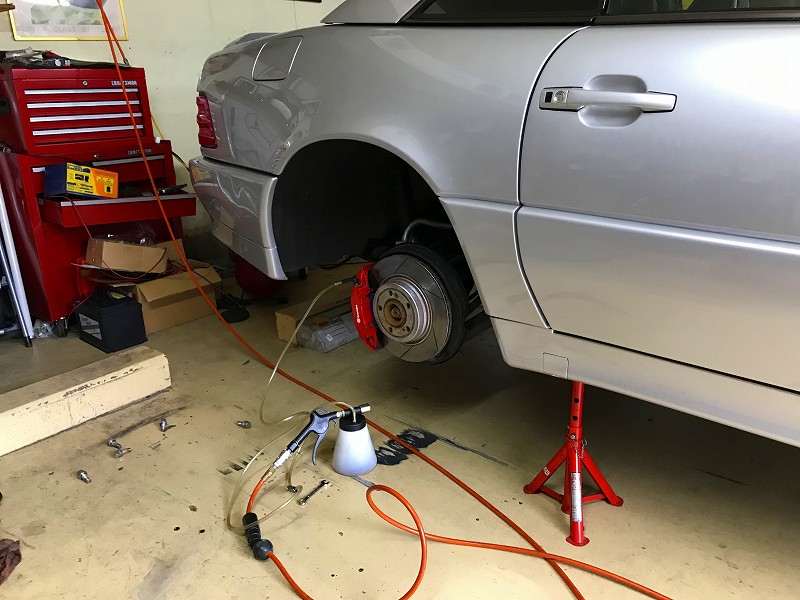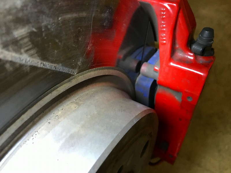 エアブリーダーが自動で仕事をしてくれている間に、4輪全てのパッド残量やキャリパー・ブレーキディスク等の異常が無いか点検も行っておく。