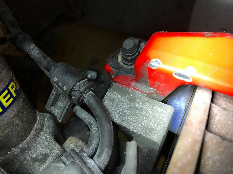 続いて、左後輪キャリパーからも同じ作業。