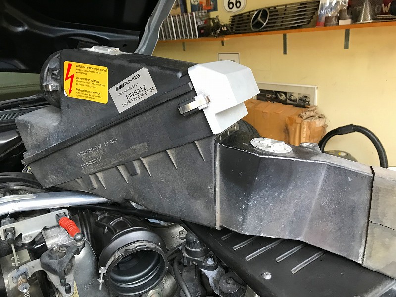 エアクリボックスを外すとエレメントのキャップが見えてくる。