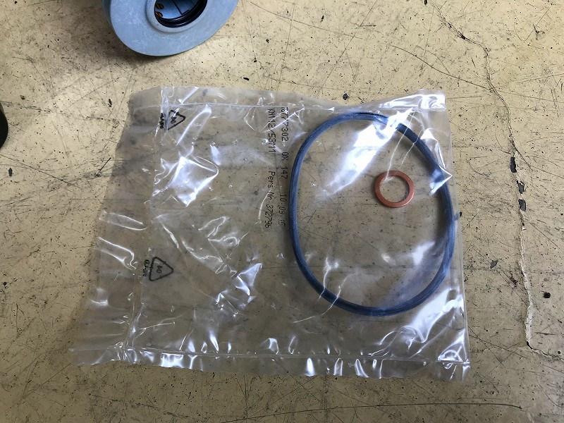 エレメントキャップのOリングとドレンボルトのパッキンも交換。