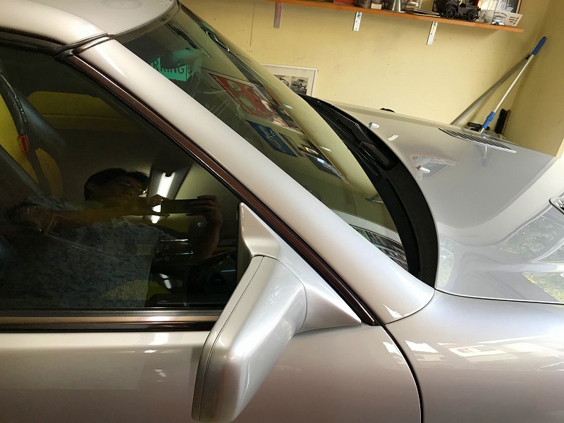 ボンネットはボンネットスクープの下までしか貼れなかった!