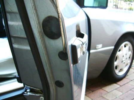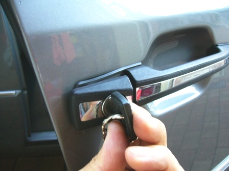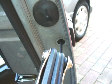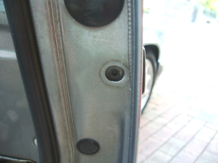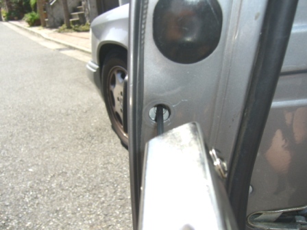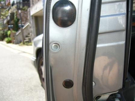 まずは、ドアを開けてシリンダーを固定してあるネジのラバープラグをマイナスドライバーでコジルと簡単に外れる。