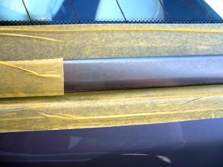 ボディーの塗装に傷が付かないようにマスキングをして、15センチくらいずつ磨くのがコツらしいが、結構な力を使うため指先が疲れる!