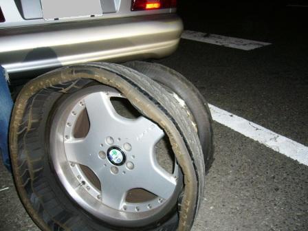 タイヤはまだ殆ど新品に近い状態であり、走る前には空気圧のチェックも行っていたらしいので、どこかで釘でも拾ったのかもしれない。