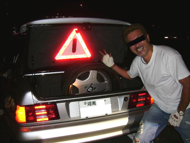 しかし、Tommy号はジャッキを積んでいなかったらしく、自力でのスペア交換は不可能と言う連絡が入り、Bob号・紅号と3台で次のICで降り、直ぐにUターンをして現場に急行した。